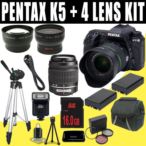 - Pentax K-5 16.3 MP Digital SLR with 18-55mm Lens and 3-Inch LCD and 50-200mm f/4-5.6 Lenses (Black) Brand New USA w/ Supplied Manufacturer Accessories